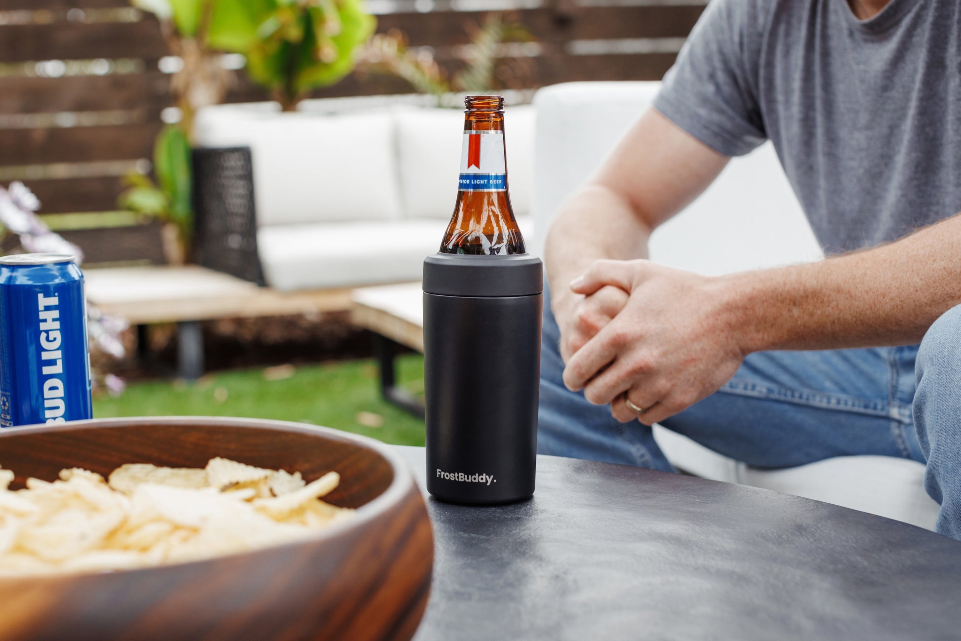 Say goodbye to your slim can or 12oz can cooler. Frost Buddy fits every 12oz can, slim can, 12oz bottle, & 16oz can / bottle all in one. It’s the only can cooler you need!